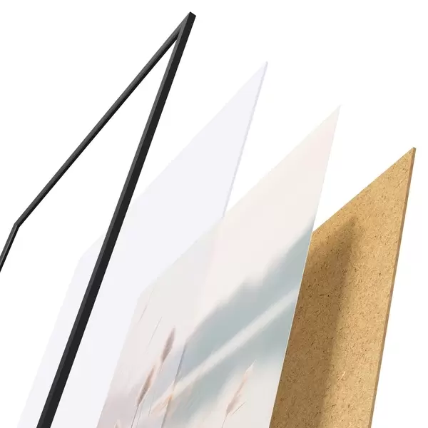 Il poster è composto da cornice, plexiglass, immagine stampata e supporto in truciolato. Il poster può essere immediatamente appeso alla parete grazie ai supporti sul retro.