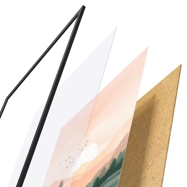 Il poster è composto da cornice, plexiglass, immagine stampata e supporto in truciolato. Il poster può essere immediatamente appeso alla parete grazie ai supporti sul retro.