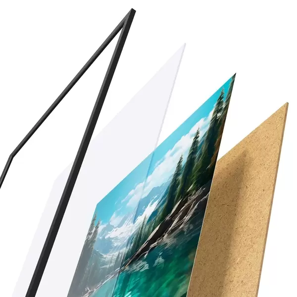 Il poster è composto da cornice, plexiglass, immagine stampata e supporto in truciolato. Il poster può essere immediatamente appeso alla parete grazie ai supporti sul retro.
