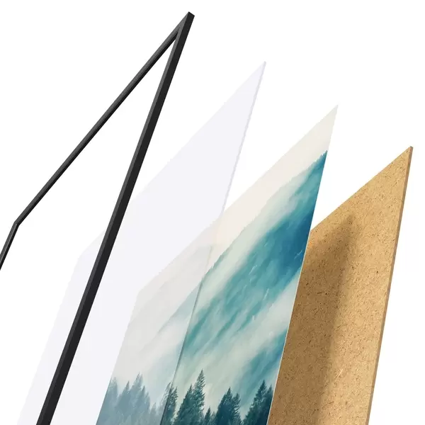 Il poster è composto da cornice, plexiglass, immagine stampata e supporto in truciolato. Il poster può essere immediatamente appeso alla parete grazie ai supporti sul retro.