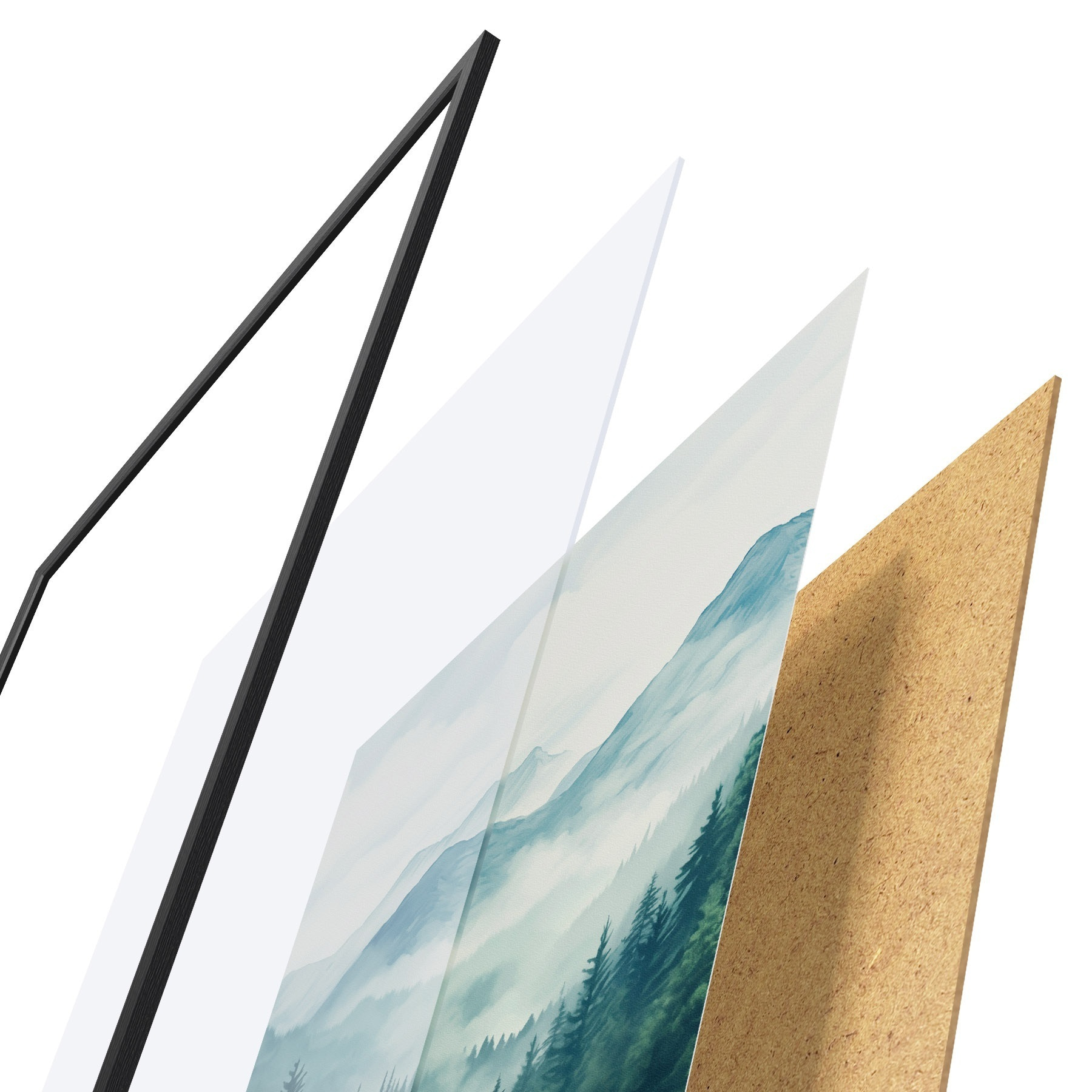 Il poster è composto da cornice, plexiglass, immagine stampata e supporto in truciolato. Il poster può essere immediatamente appeso alla parete grazie ai supporti sul retro.