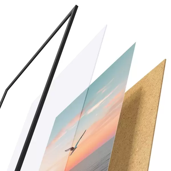 Il poster è composto da cornice, plexiglass, immagine stampata e supporto in truciolato. Il poster può essere immediatamente appeso alla parete grazie ai supporti sul retro.