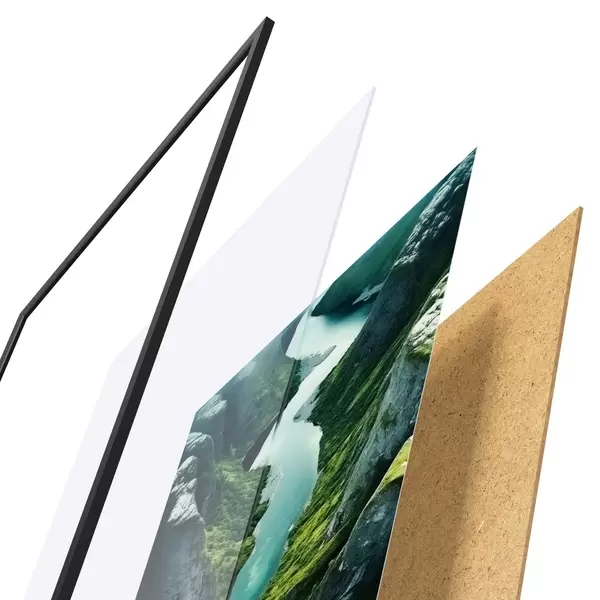Il poster è composto da cornice, plexiglass, immagine stampata e supporto in truciolato. Il poster può essere immediatamente appeso alla parete grazie ai supporti sul retro.