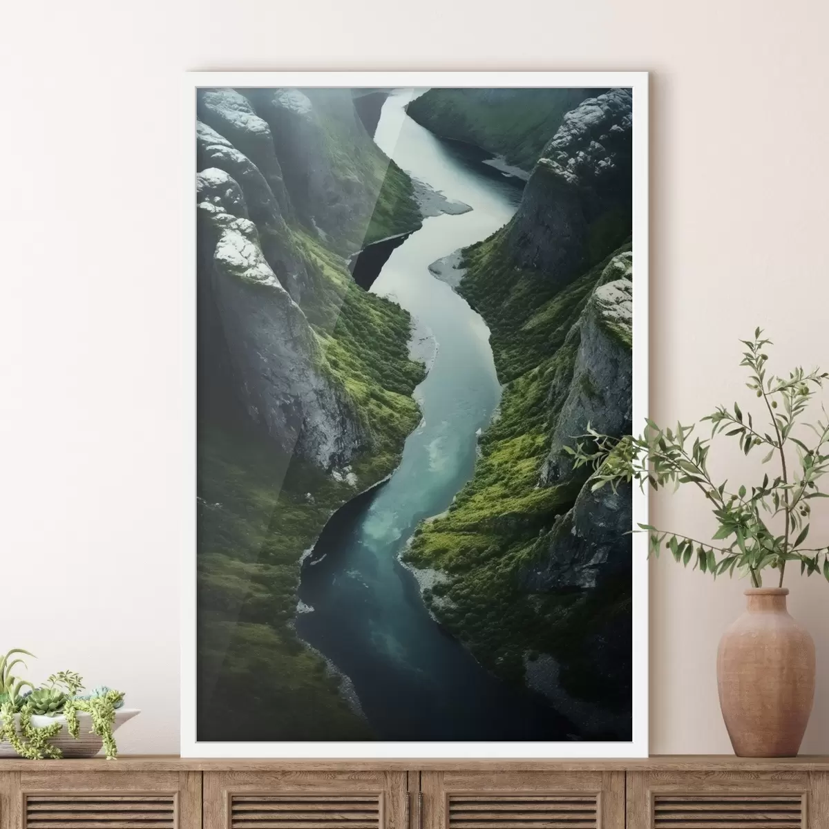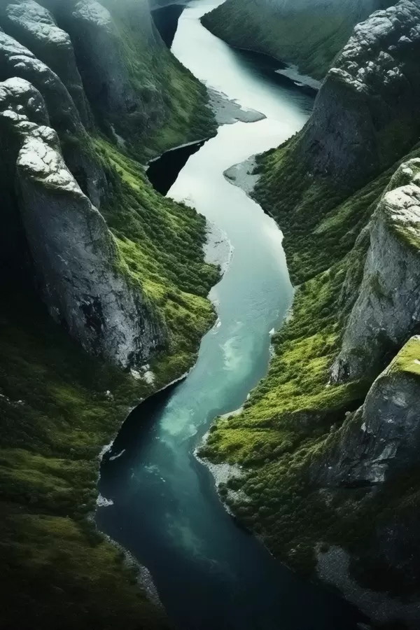 Poster Fiume serpeggiante tra le scogliere, vista aerea Nr f46521