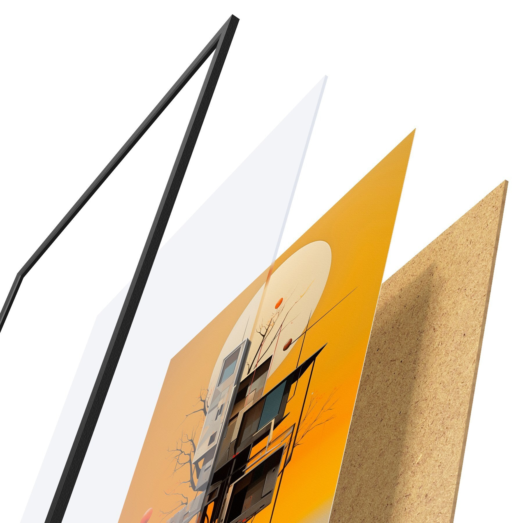 Il poster è composto da cornice, plexiglass, immagine stampata e supporto in truciolato. Il poster può essere immediatamente appeso alla parete grazie ai supporti sul retro.