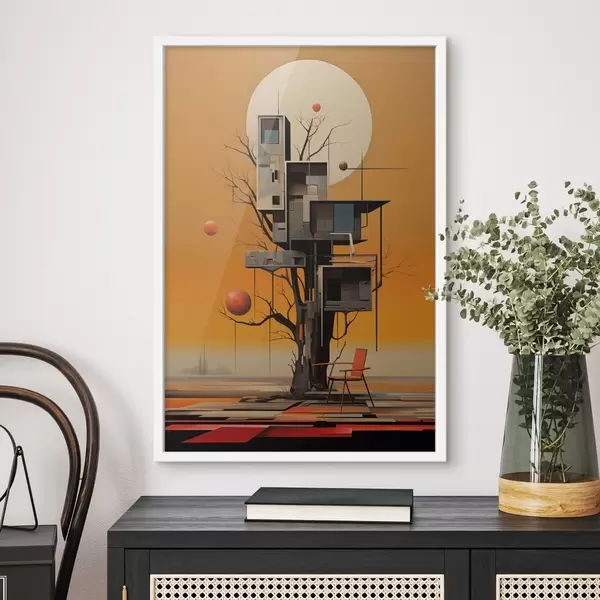 Poster Surreale casa sull'albero su sfondo arancione f46526