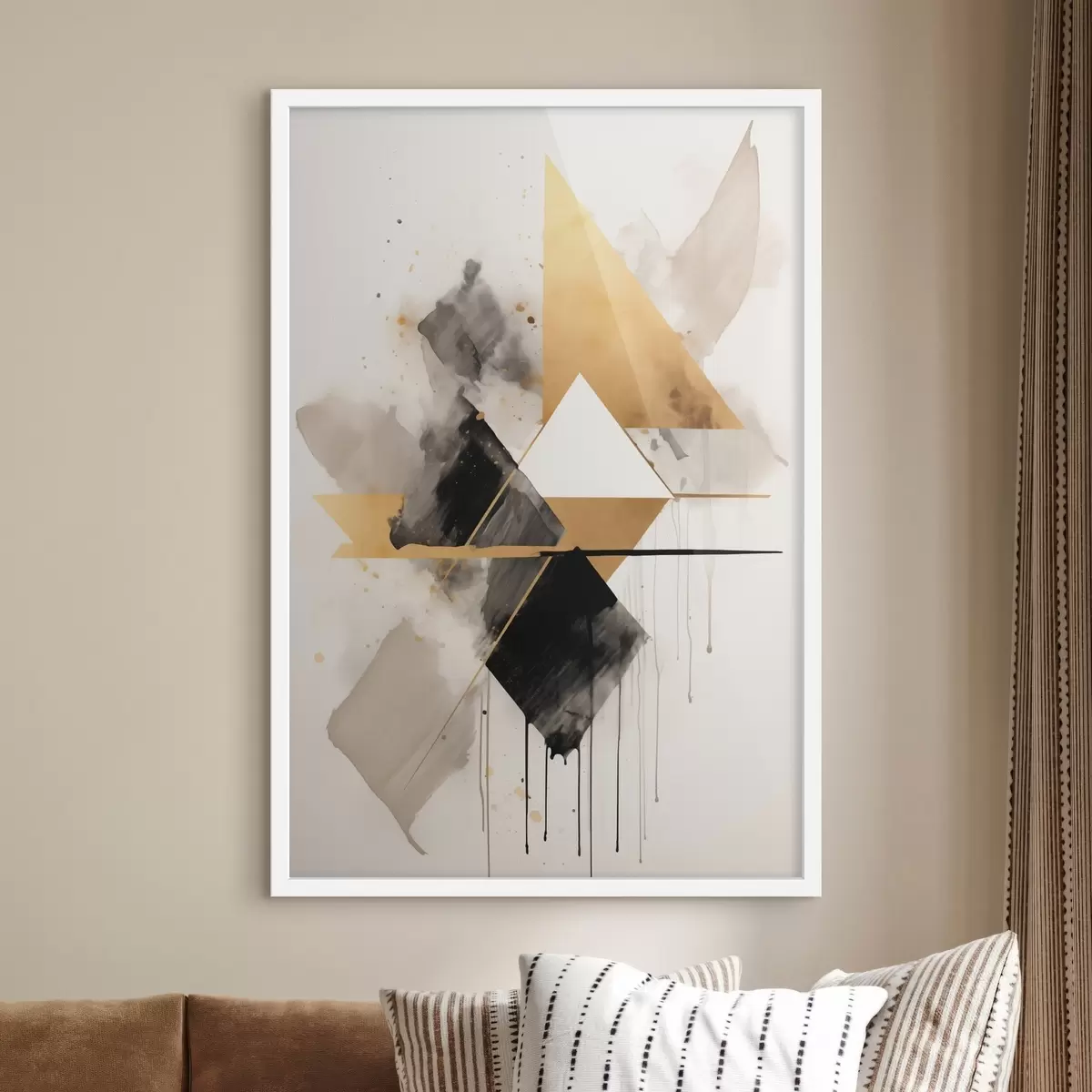Poster Geometria con triangoli e un rombo nero, tratti beige Nr f46539