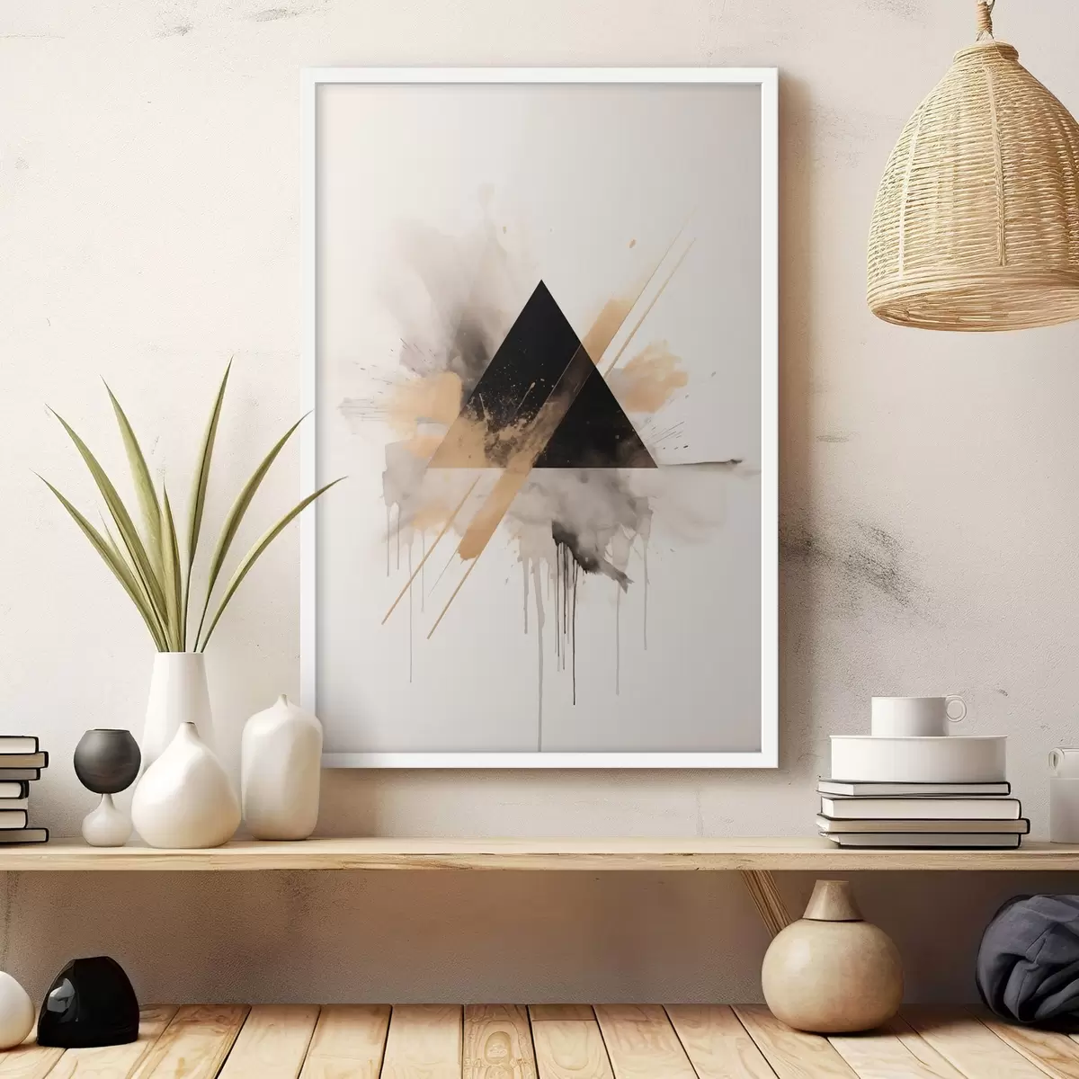 Poster Geometria: triangolo nero con spruzzi e linee chiare f46540