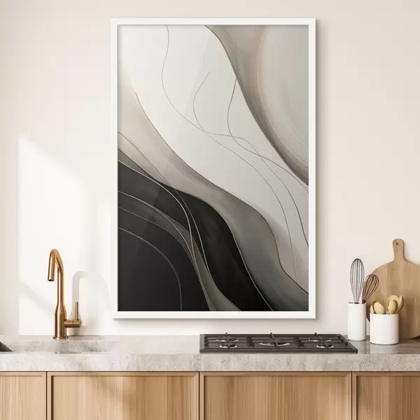 Poster Onde in nero e beige con sottili linee ocra f46541
