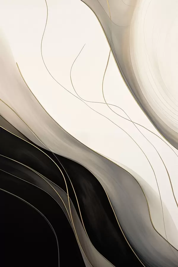 Poster Onde in nero e beige con sottili linee ocra f46541