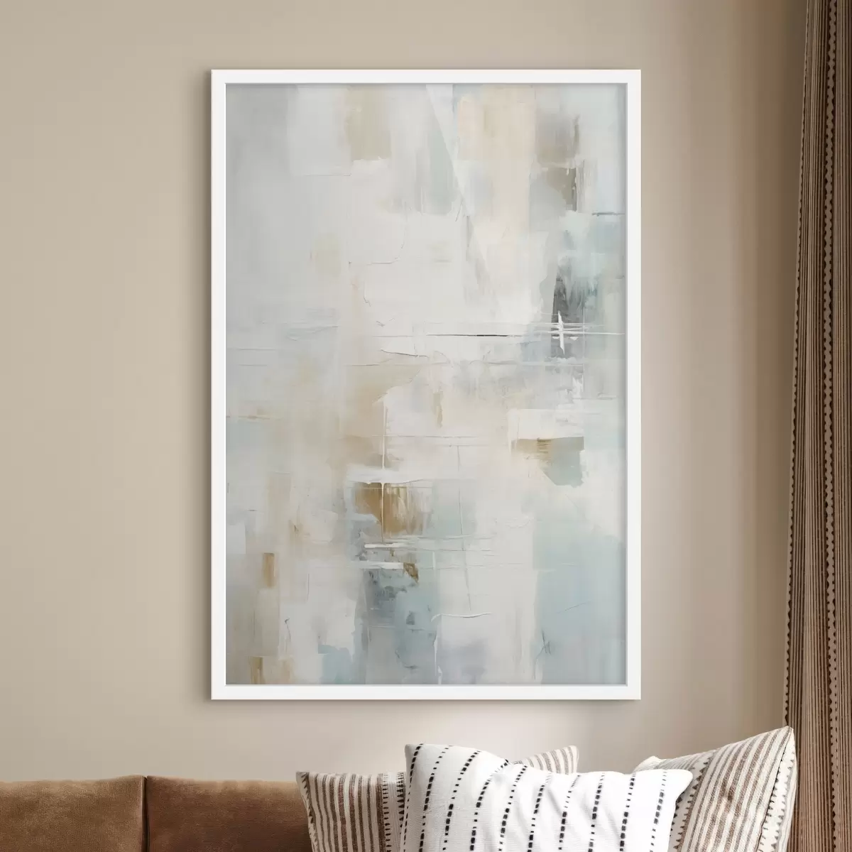 Poster Pennellate leggere di blu e beige su sfondo bianco Nr f46547