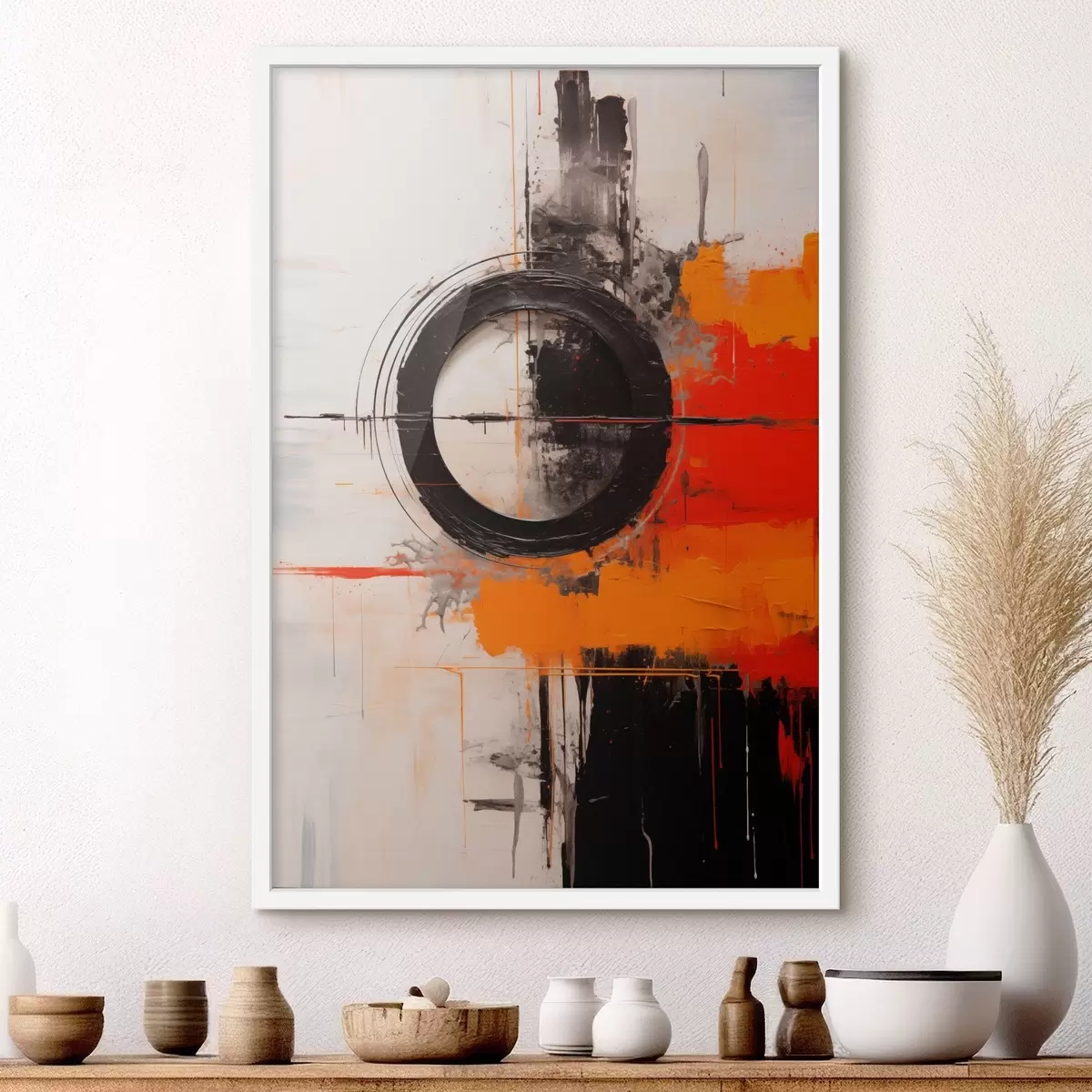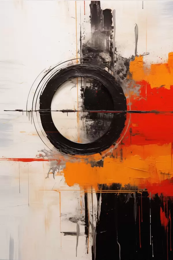 Poster Cerchio nero su sfondo bianco, pennellate e schizzi arancioni Nr f46549