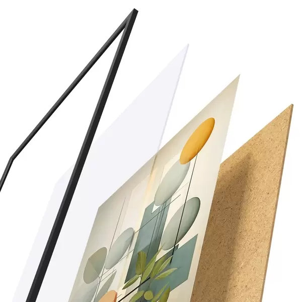 Il poster è composto da cornice, plexiglass, immagine stampata e supporto in truciolato. Il poster può essere immediatamente appeso alla parete grazie ai supporti sul retro.