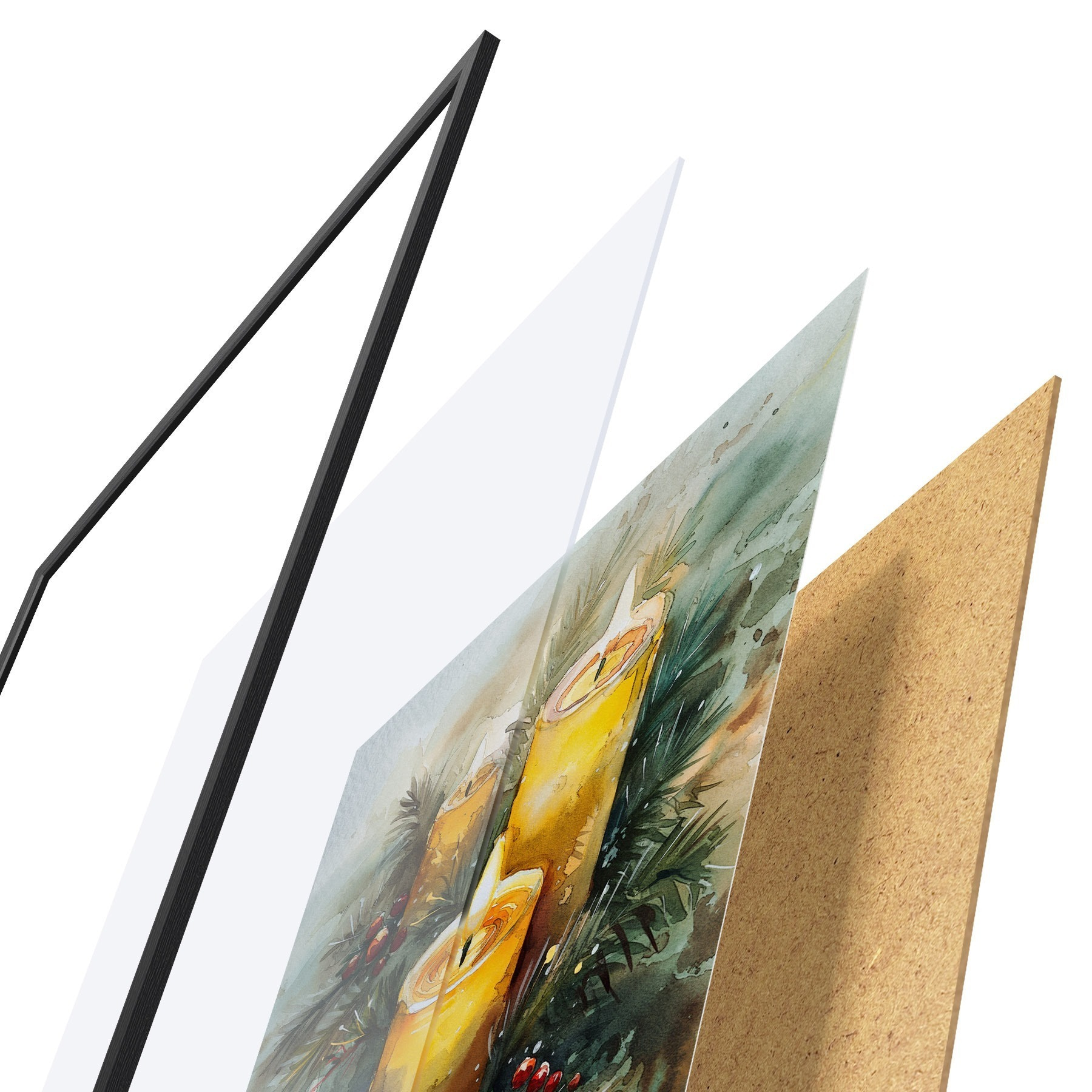 Il poster è composto da cornice, plexiglass, immagine stampata e supporto in truciolato. Il poster può essere immediatamente appeso alla parete grazie ai supporti sul retro.