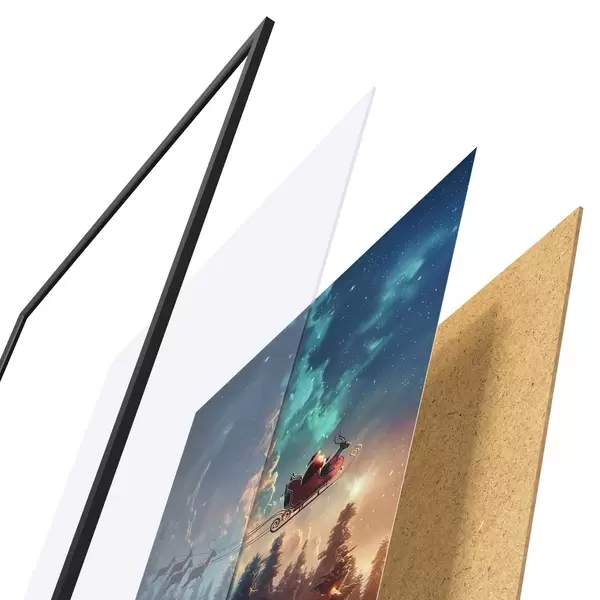 Il poster è composto da cornice, plexiglass, immagine stampata e supporto in truciolato. Il poster può essere immediatamente appeso alla parete grazie ai supporti sul retro.