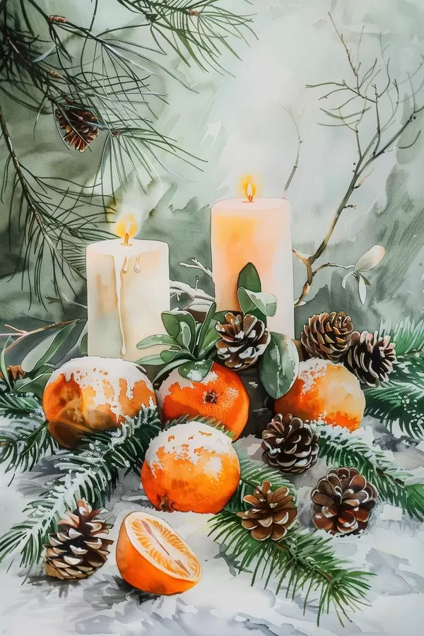 Poster Candele, mandarini e pigne Nr f46614