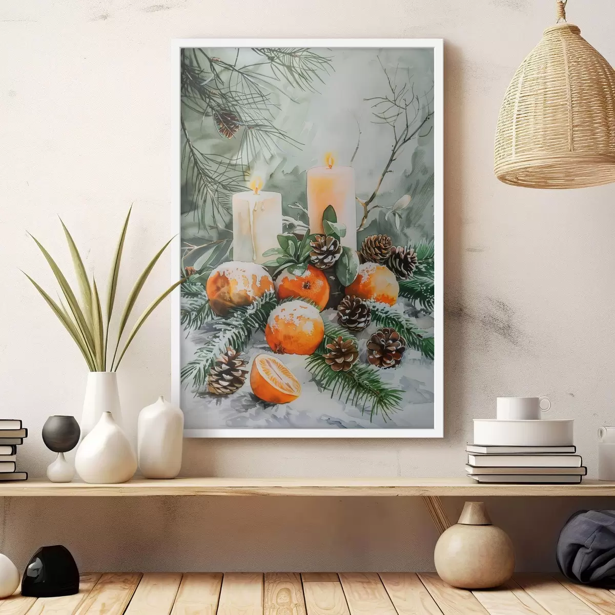 Poster Candele, mandarini e pigne f46614