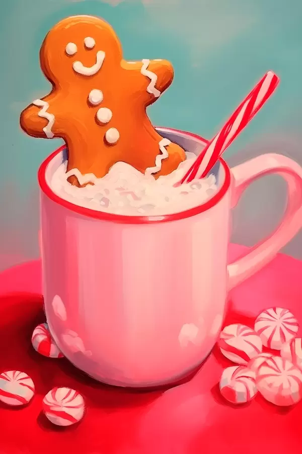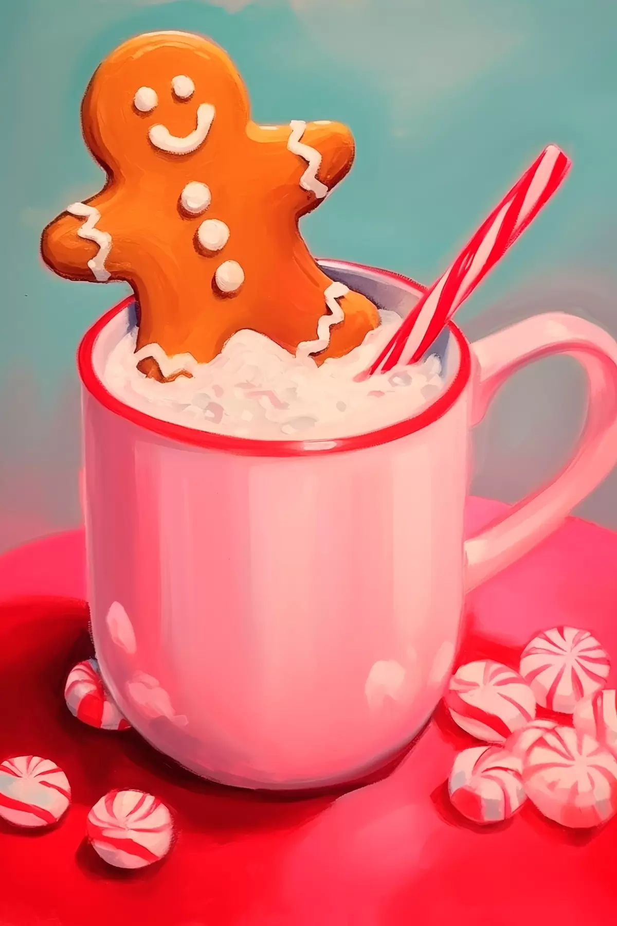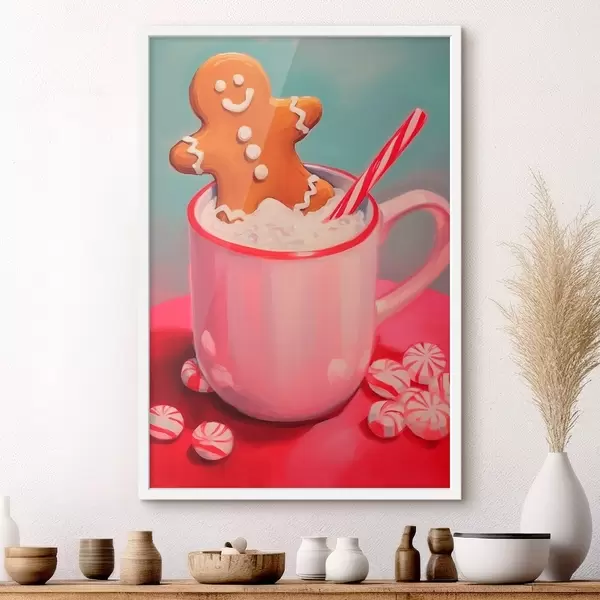 Poster Omino di pan di zenzero in una tazza di cioccolata calda Nr f46635