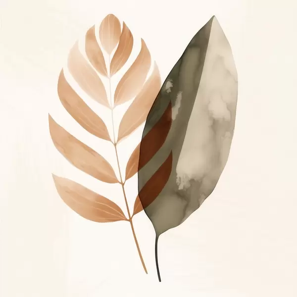 Poster Una coppia di sagome di foglie in stile astratto acquerellato Nr f46645