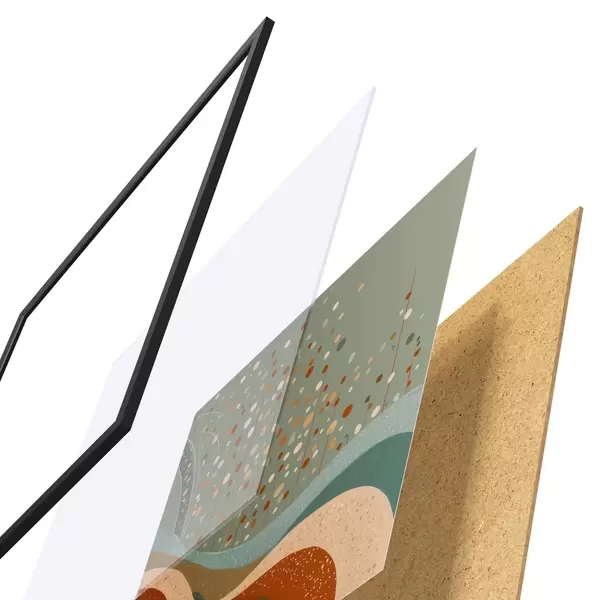 Il poster è composto da cornice, plexiglass, immagine stampata e supporto in truciolato. Il poster può essere immediatamente appeso alla parete grazie ai supporti sul retro.