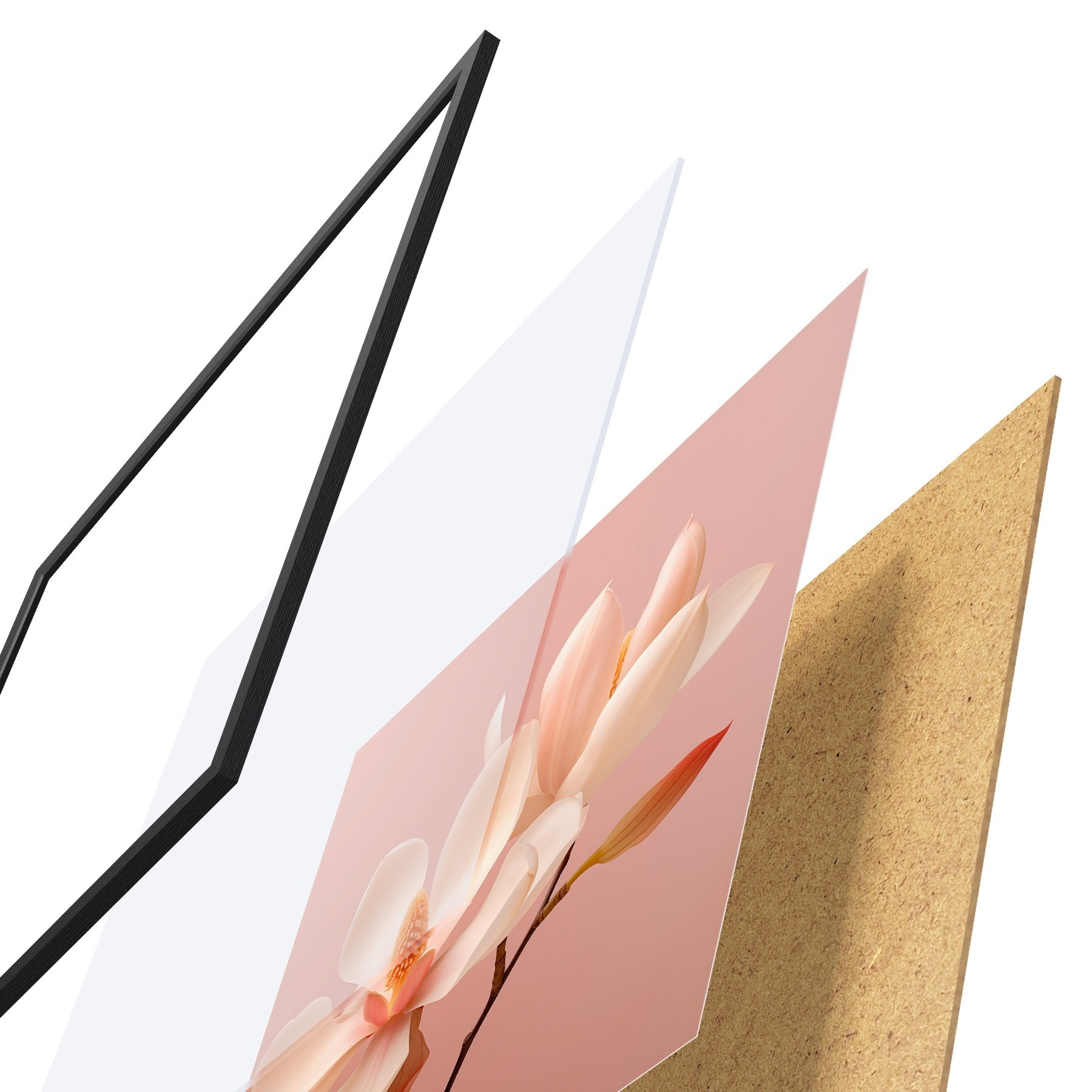 Il poster è composto da cornice, plexiglass, immagine stampata e supporto in truciolato. Il poster può essere immediatamente appeso alla parete grazie ai supporti sul retro.
