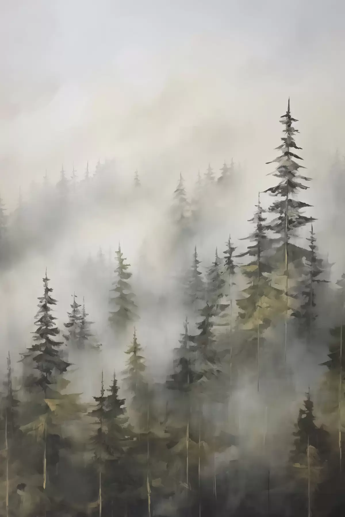 Poster Foresta nella nebbia imitazione di un dipinto Nr f46671