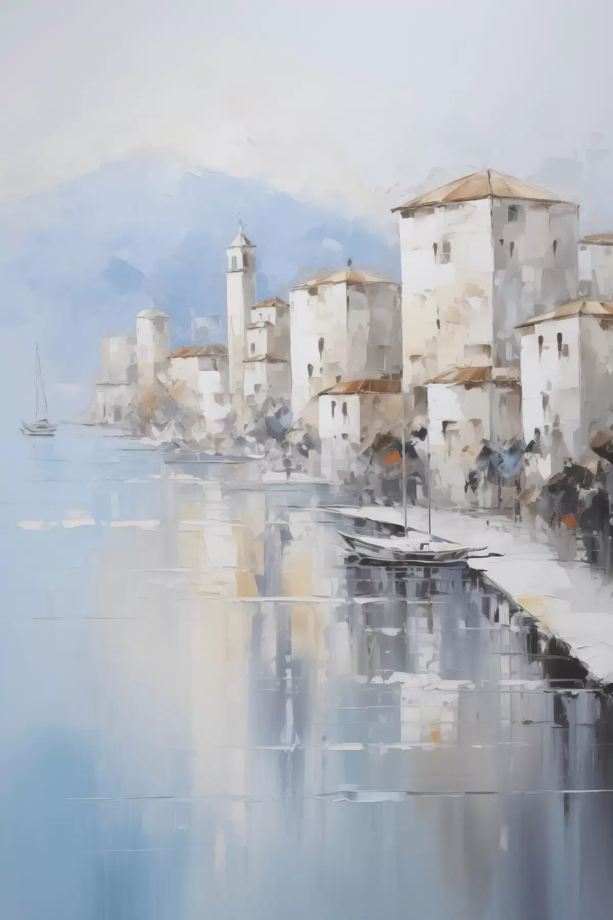 Poster Case astratte sulla baia imitazione di un dipinto f46673