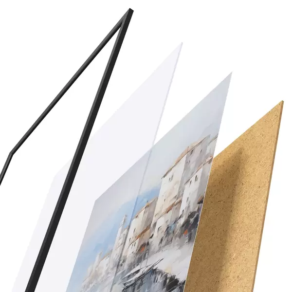 Il poster è composto da cornice, plexiglass, immagine stampata e supporto in truciolato. Il poster può essere immediatamente appeso alla parete grazie ai supporti sul retro.