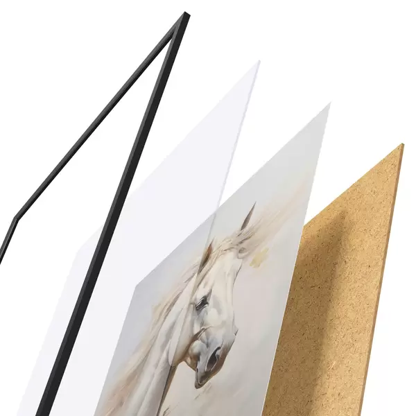 Il poster è composto da cornice, plexiglass, immagine stampata e supporto in truciolato. Il poster può essere immediatamente appeso alla parete grazie ai supporti sul retro.