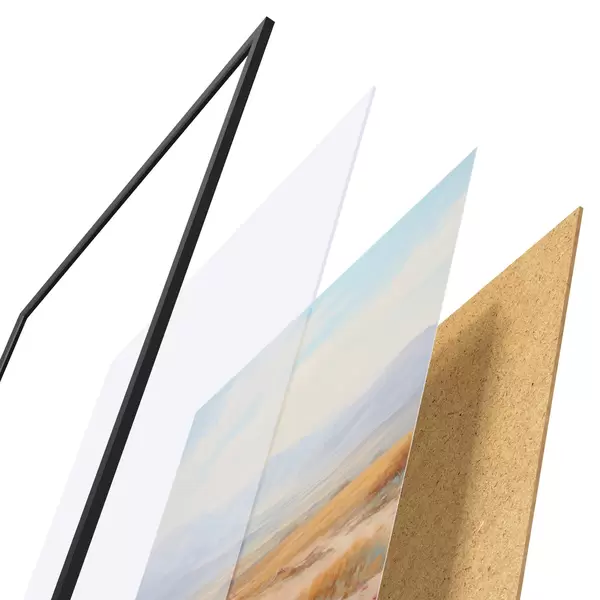 Il poster è composto da cornice, plexiglass, immagine stampata e supporto in truciolato. Il poster può essere immediatamente appeso alla parete grazie ai supporti sul retro.