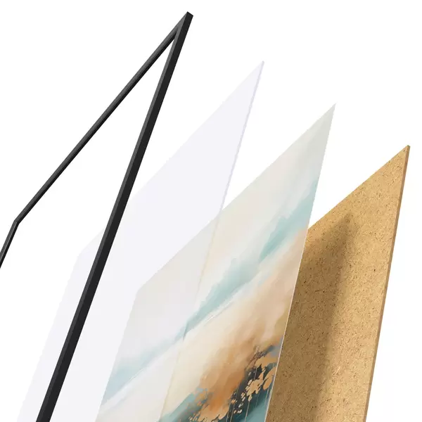 Il poster è composto da cornice, plexiglass, immagine stampata e supporto in truciolato. Il poster può essere immediatamente appeso alla parete grazie ai supporti sul retro.