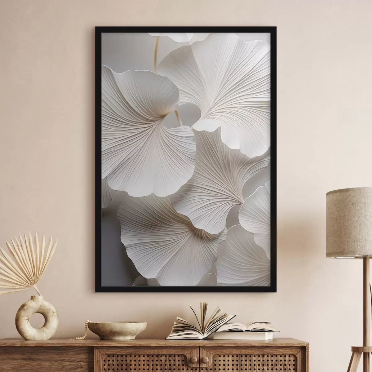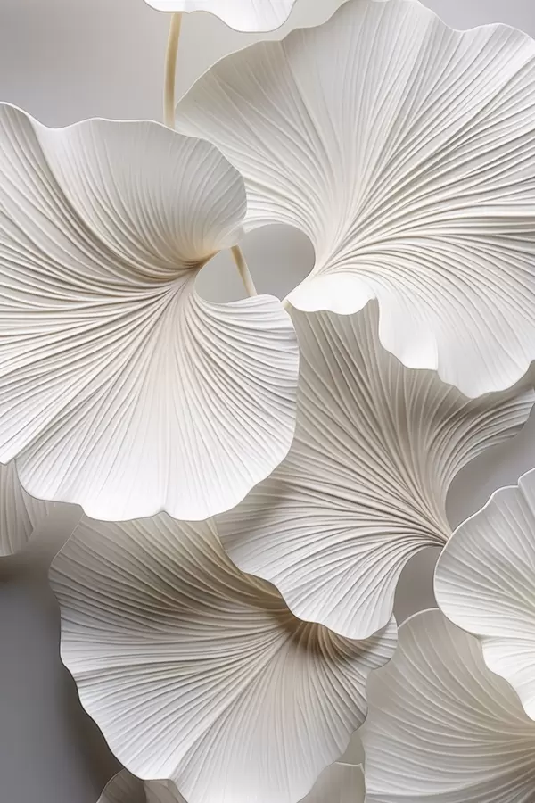 Poster Foglie bianche di ginkgo biloba con venature dettagliate, illuminazione soffusa, design elegante e minimalista con texture Nr f46705