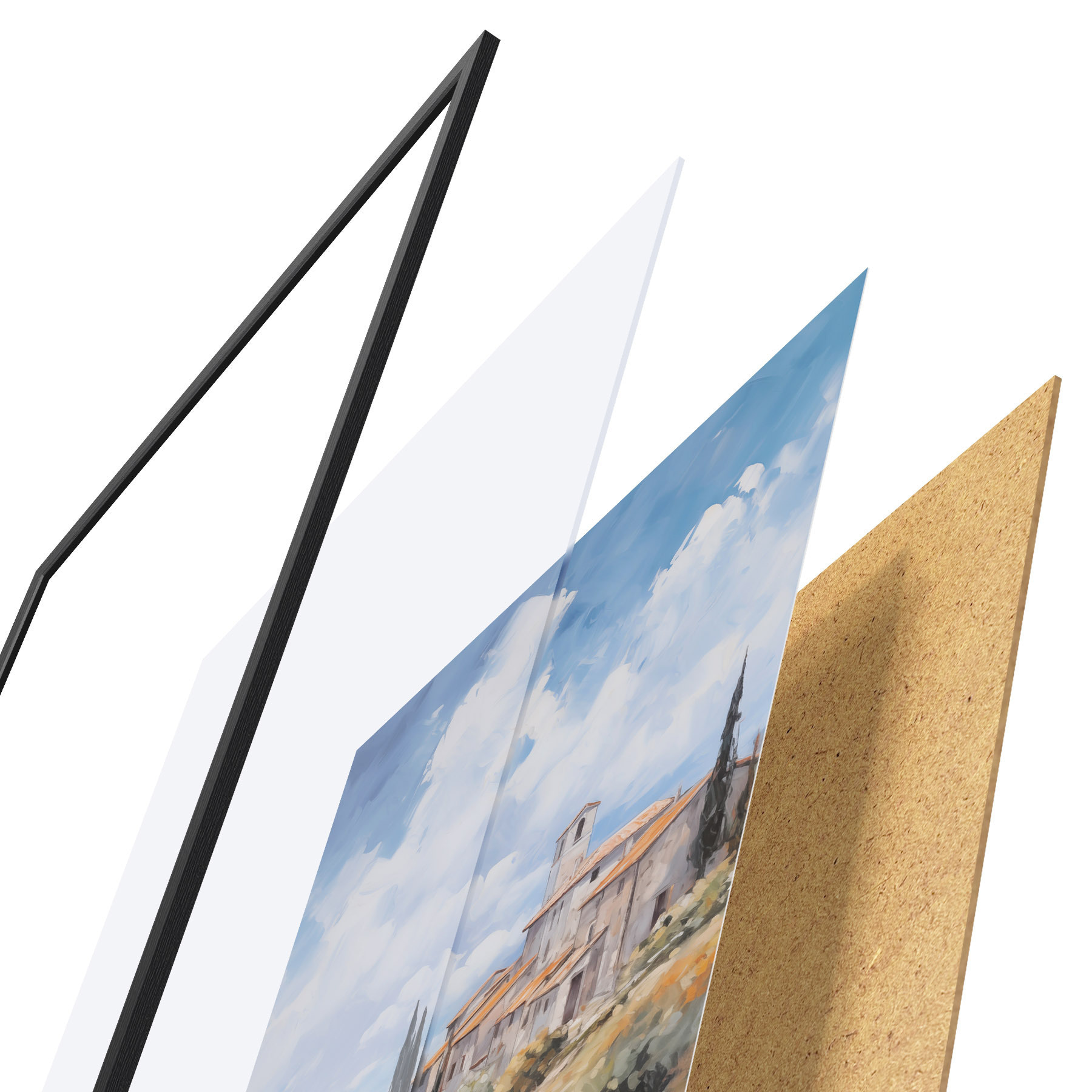 Il poster è composto da cornice, plexiglass, immagine stampata e supporto in truciolato. Il poster può essere immediatamente appeso alla parete grazie ai supporti sul retro.