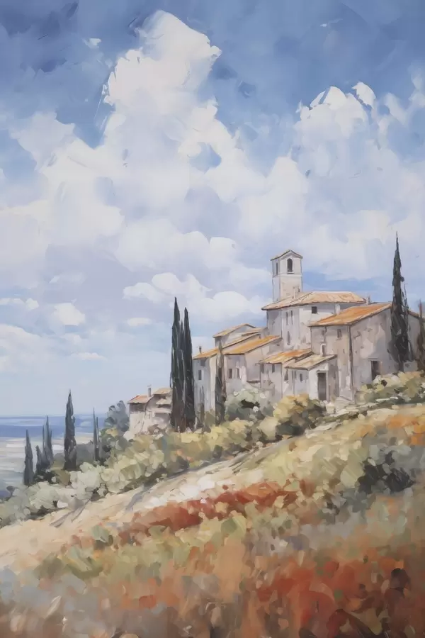 Poster Imitazione di un paesaggio rurale nella pittura f46716
