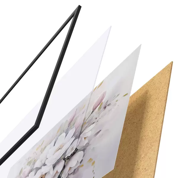 Il poster è composto da cornice, plexiglass, immagine stampata e supporto in truciolato. Il poster può essere immediatamente appeso alla parete grazie ai supporti sul retro.