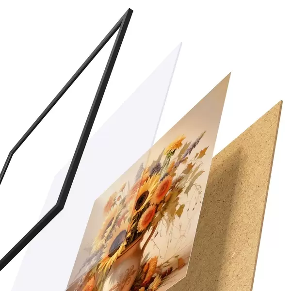 Il poster è composto da cornice, plexiglass, immagine stampata e supporto in truciolato. Il poster può essere immediatamente appeso alla parete grazie ai supporti sul retro.