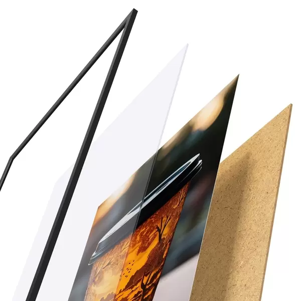 Il poster è composto da cornice, plexiglass, immagine stampata e supporto in truciolato. Il poster può essere immediatamente appeso alla parete grazie ai supporti sul retro.