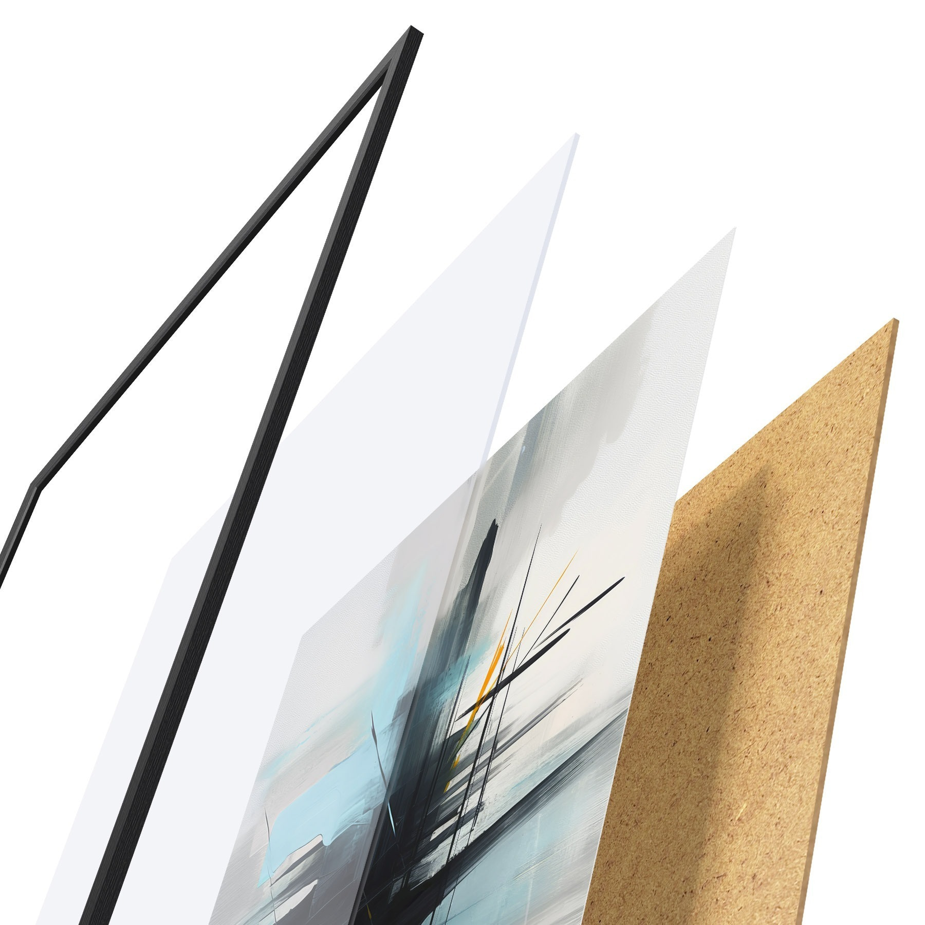 Il poster è composto da cornice, plexiglass, immagine stampata e supporto in truciolato. Il poster può essere immediatamente appeso alla parete grazie ai supporti sul retro.