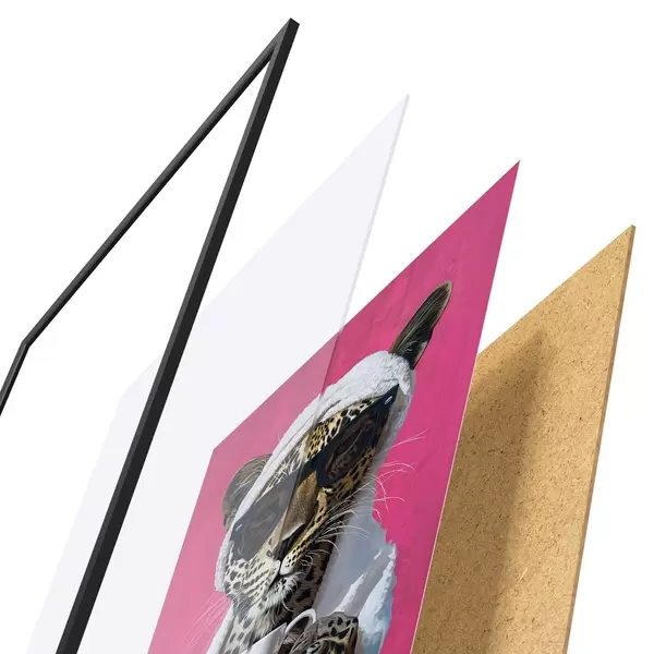 Il poster è composto da cornice, plexiglass, immagine stampata e supporto in truciolato. Il poster può essere immediatamente appeso alla parete grazie ai supporti sul retro.