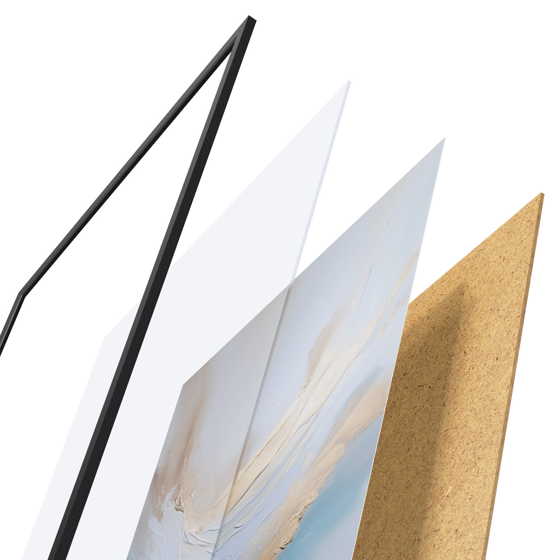 Il poster è composto da cornice, plexiglass, immagine stampata e supporto in truciolato. Il poster può essere immediatamente appeso alla parete grazie ai supporti sul retro.