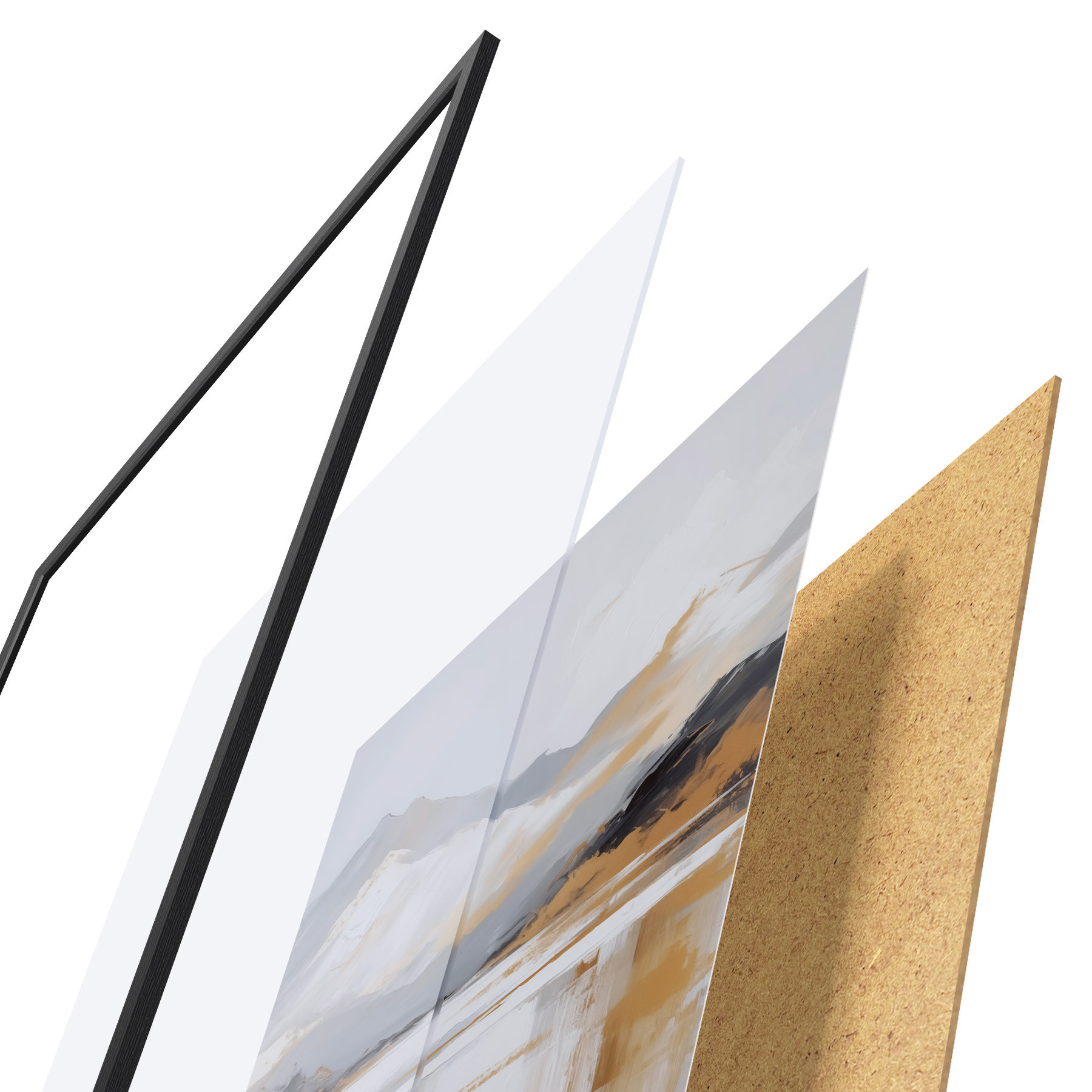 Il poster è composto da cornice, plexiglass, immagine stampata e supporto in truciolato. Il poster può essere immediatamente appeso alla parete grazie ai supporti sul retro.