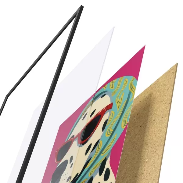 Il poster è composto da cornice, plexiglass, immagine stampata e supporto in truciolato. Il poster può essere immediatamente appeso alla parete grazie ai supporti sul retro.