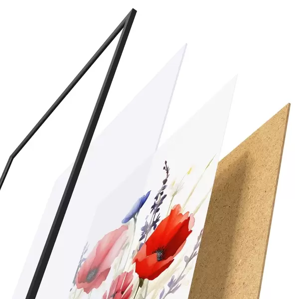 Il poster è composto da cornice, plexiglass, immagine stampata e supporto in truciolato. Il poster può essere immediatamente appeso alla parete grazie ai supporti sul retro.