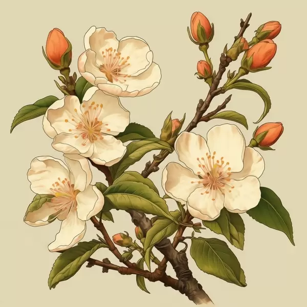 Poster Ramo fiorito con fiori bianchi su sfondo beige nello stile dell'illustrazione classica Nr f46923