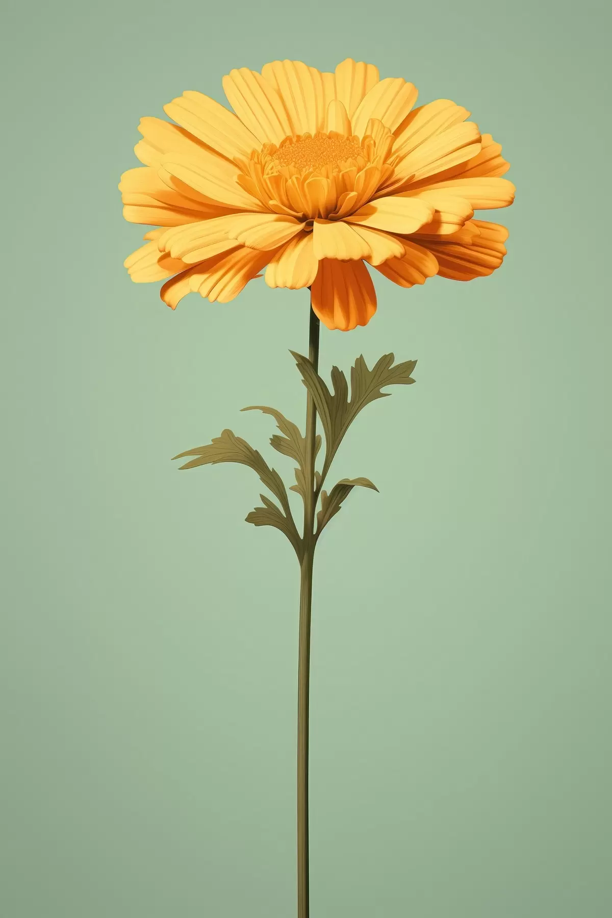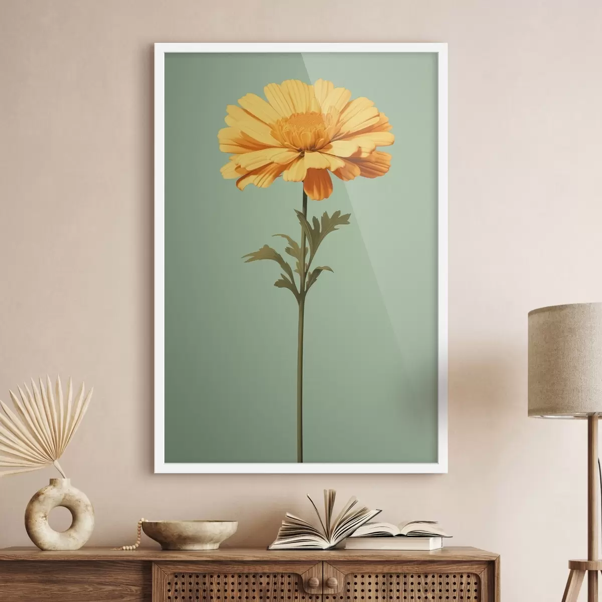 Poster Calendula gialla su sfondo color menta in stile minimalista Nr f46926