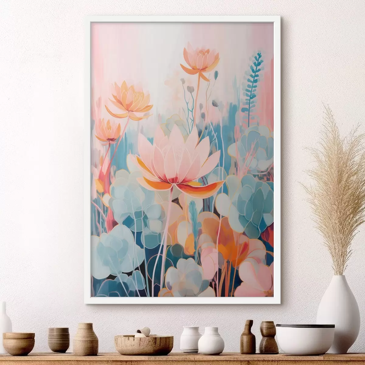 Poster Loto e fogliame decorativo in una palette di colori rosa e blu Nr f46929