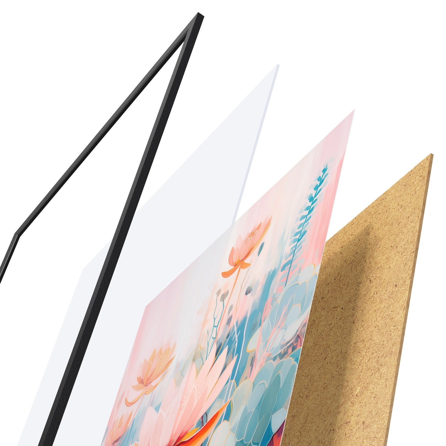 Il poster è composto da cornice, plexiglass, immagine stampata e supporto in truciolato. Il poster può essere immediatamente appeso alla parete grazie ai supporti sul retro.