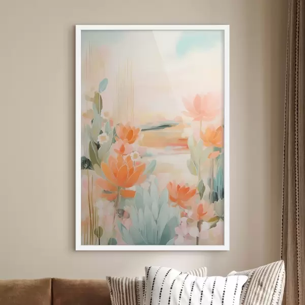 Poster Paesaggio floreale nei toni del rosa e del blu in uno stile pittorico contemporaneo Nr f46931