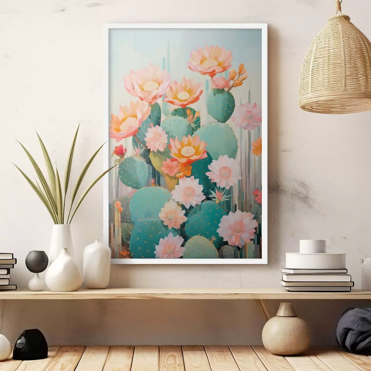 Poster Giardino di fiori di cactus in una delicata palette di colori pastello in stile illustrativo Nr f46935