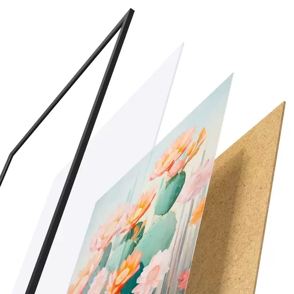 Il poster è composto da cornice, plexiglass, immagine stampata e supporto in truciolato. Il poster può essere immediatamente appeso alla parete grazie ai supporti sul retro.